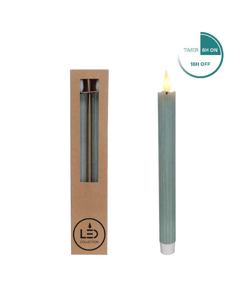 LED Pencil Candle set/2 Ø2.1 h. 25cm Eucalyptus Green