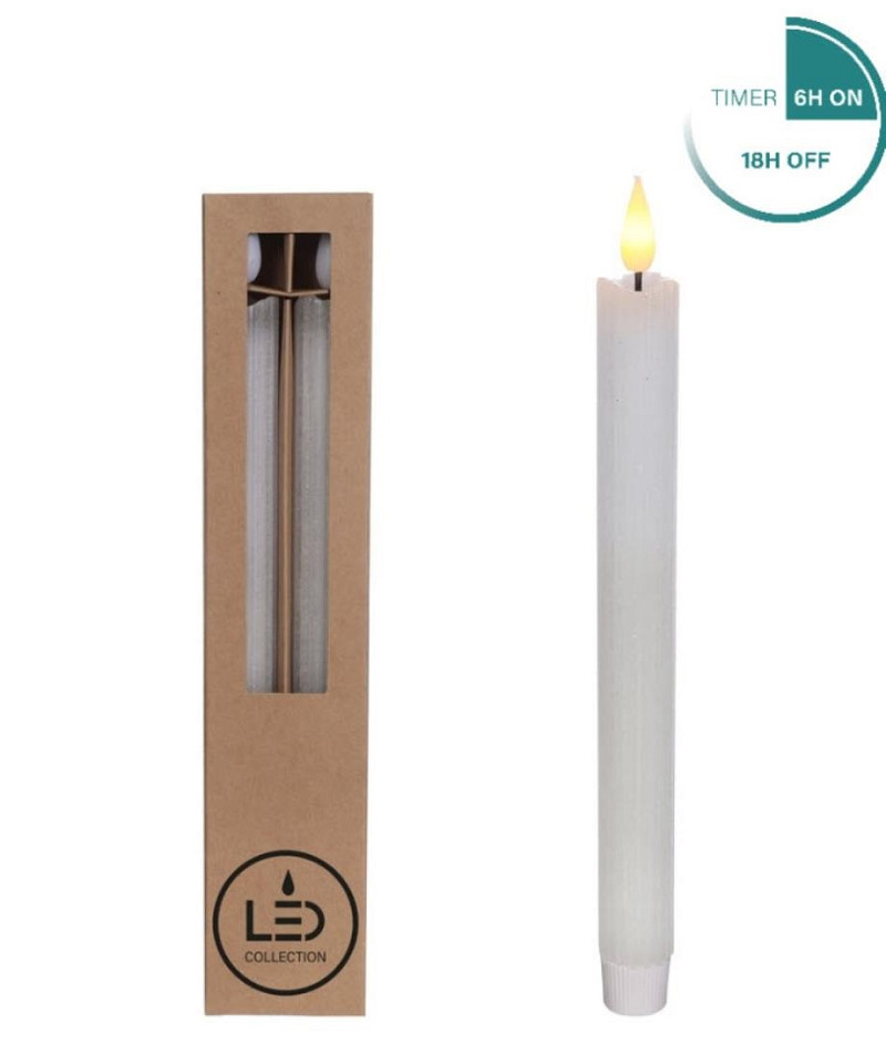 LED Pencil Candle set/2 Ø2.1 h. 25cm White