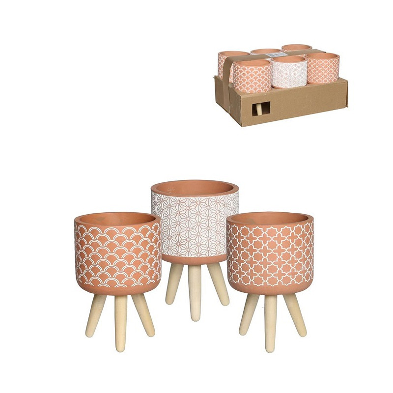 Cement pot Terra with wooden legs h.18 Ø12 cm