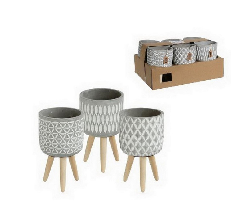 Cement w.pattern w.wooden legs h.18 Ø12 cm