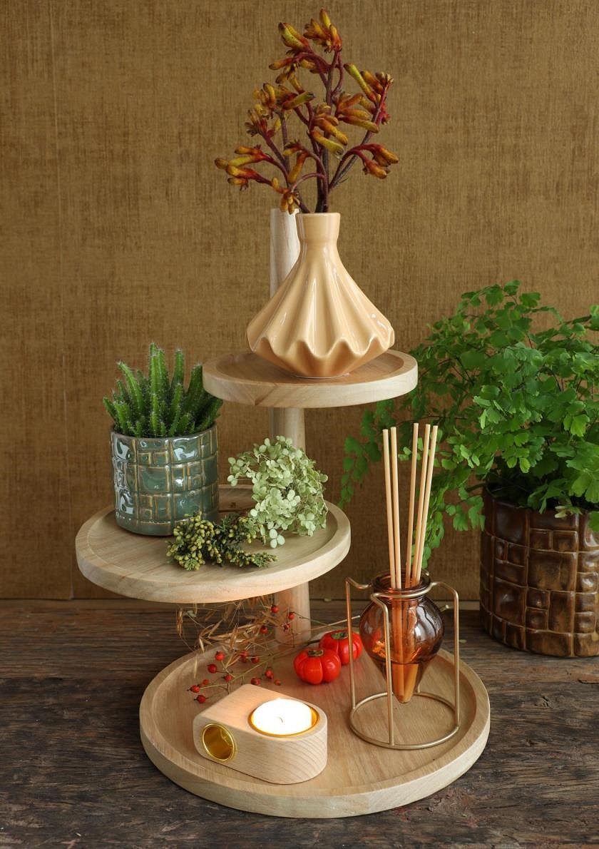 Wood 3 layers etagere h.37 dia 25,5+dia 20,5+ dia 15,5 cm