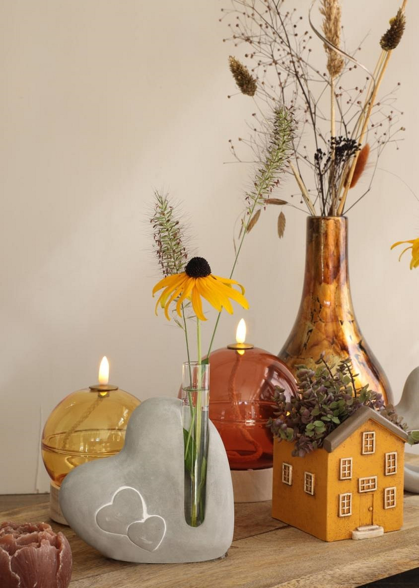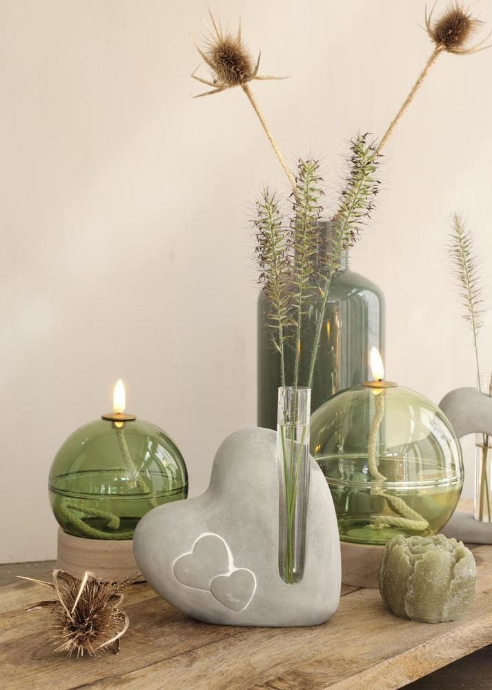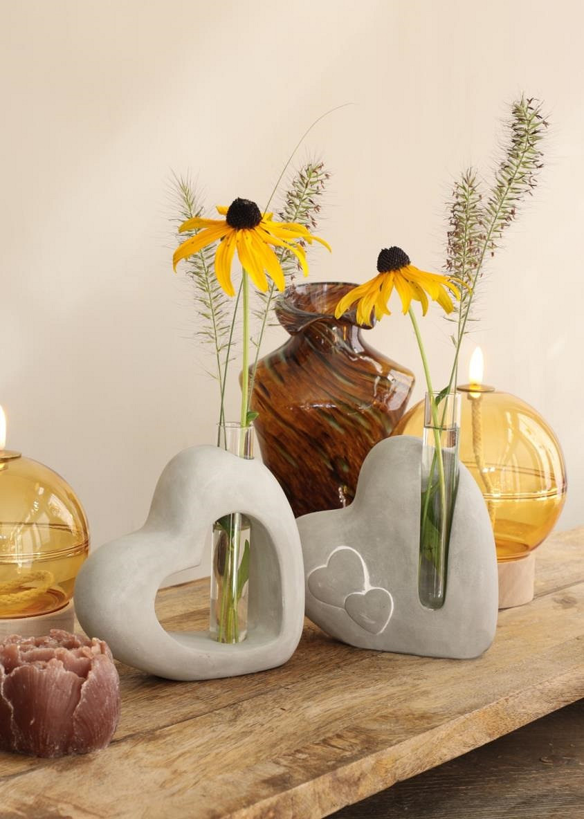 Cement heart with glass tube L.4,5 x W.13 x H.14,6