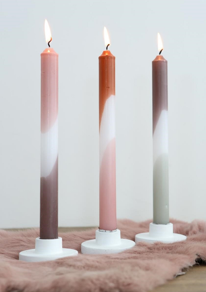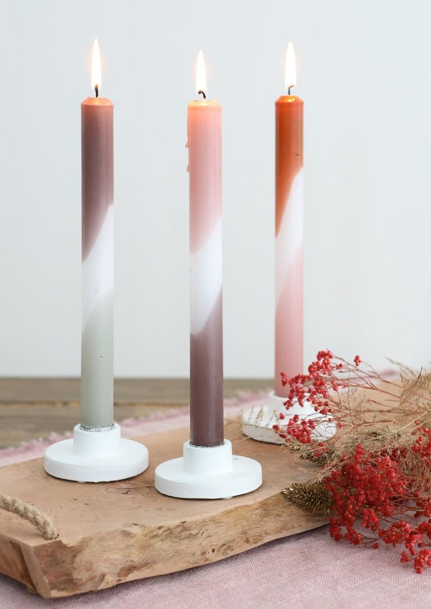 Dip Dye taper candle h.24 Ø2,2 cm set 3 pink - olive