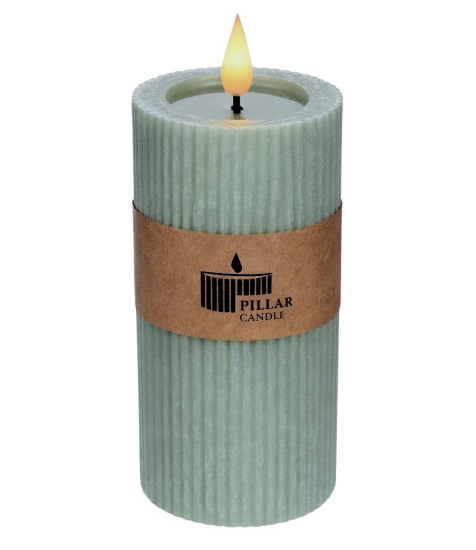LED Rustic Pillar Candle Ø7 h.15 cm Eucalyptus w. timer