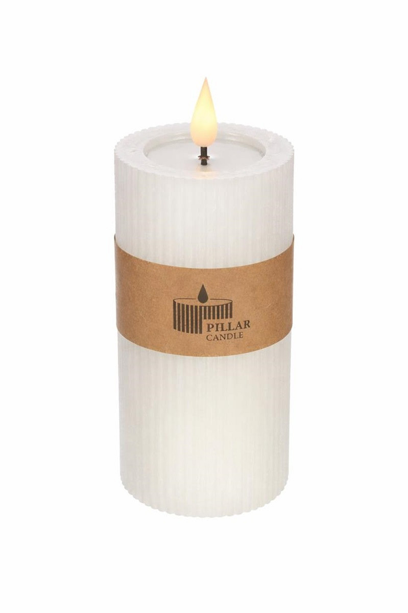 LED Rustic Pillar Candle Ø7 h.15 cm White w. timer