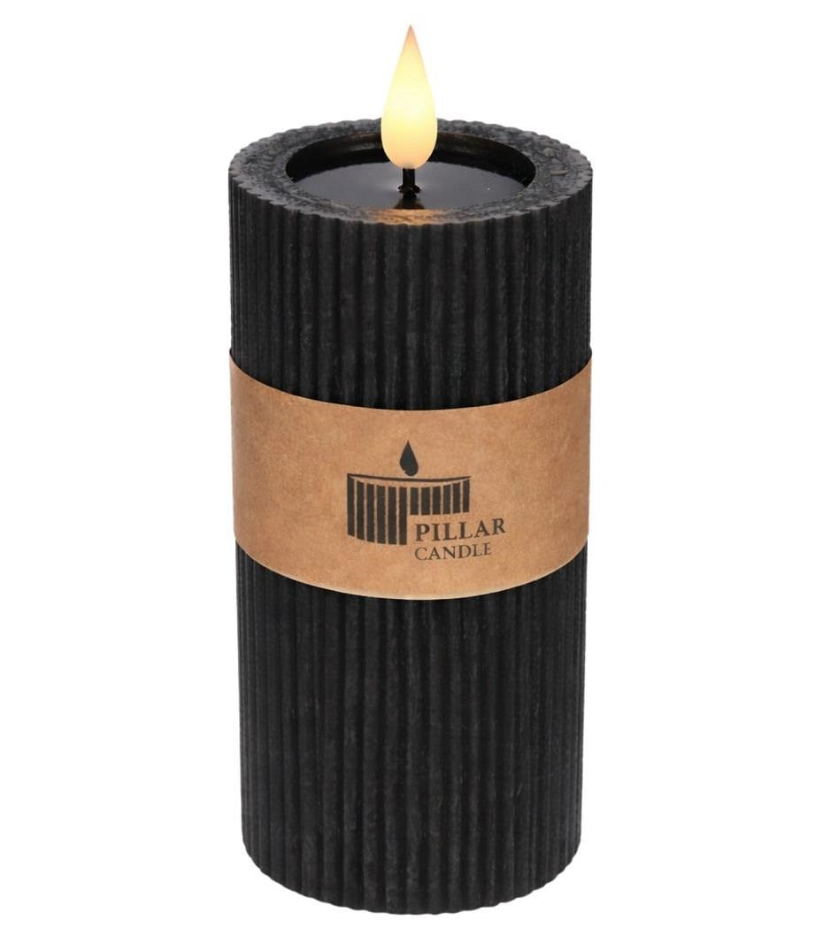 LED Rustic Pillar Candle Ø7 h.15 cm Black w. timer