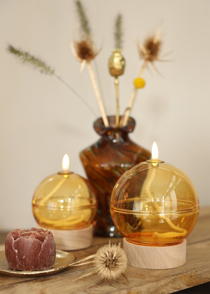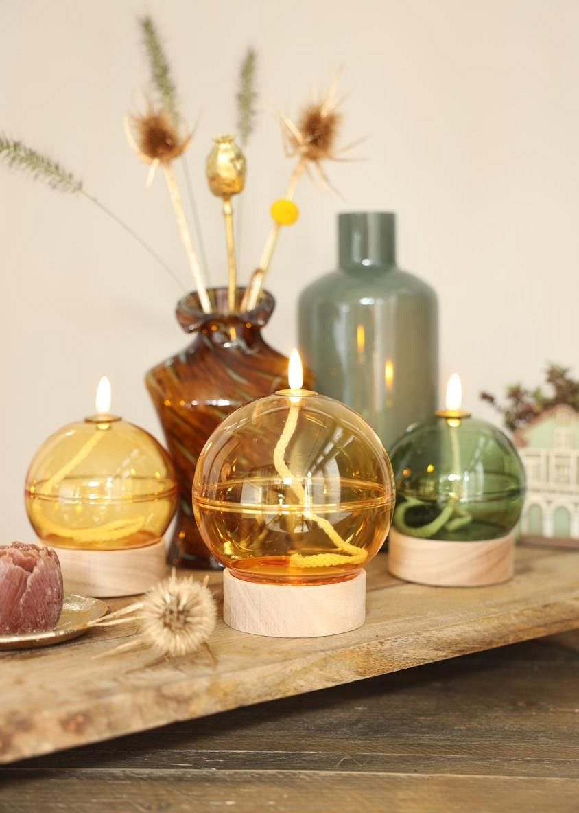 Led oil lamp h13,5 Ø10 cm ocre w. timer