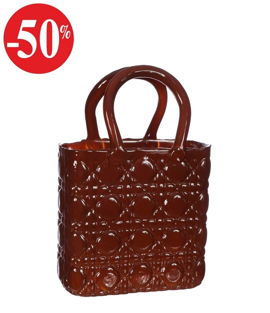 Handbag vase Elysee glass handle L.14 x W.9,5 x H.22 cm mahogany