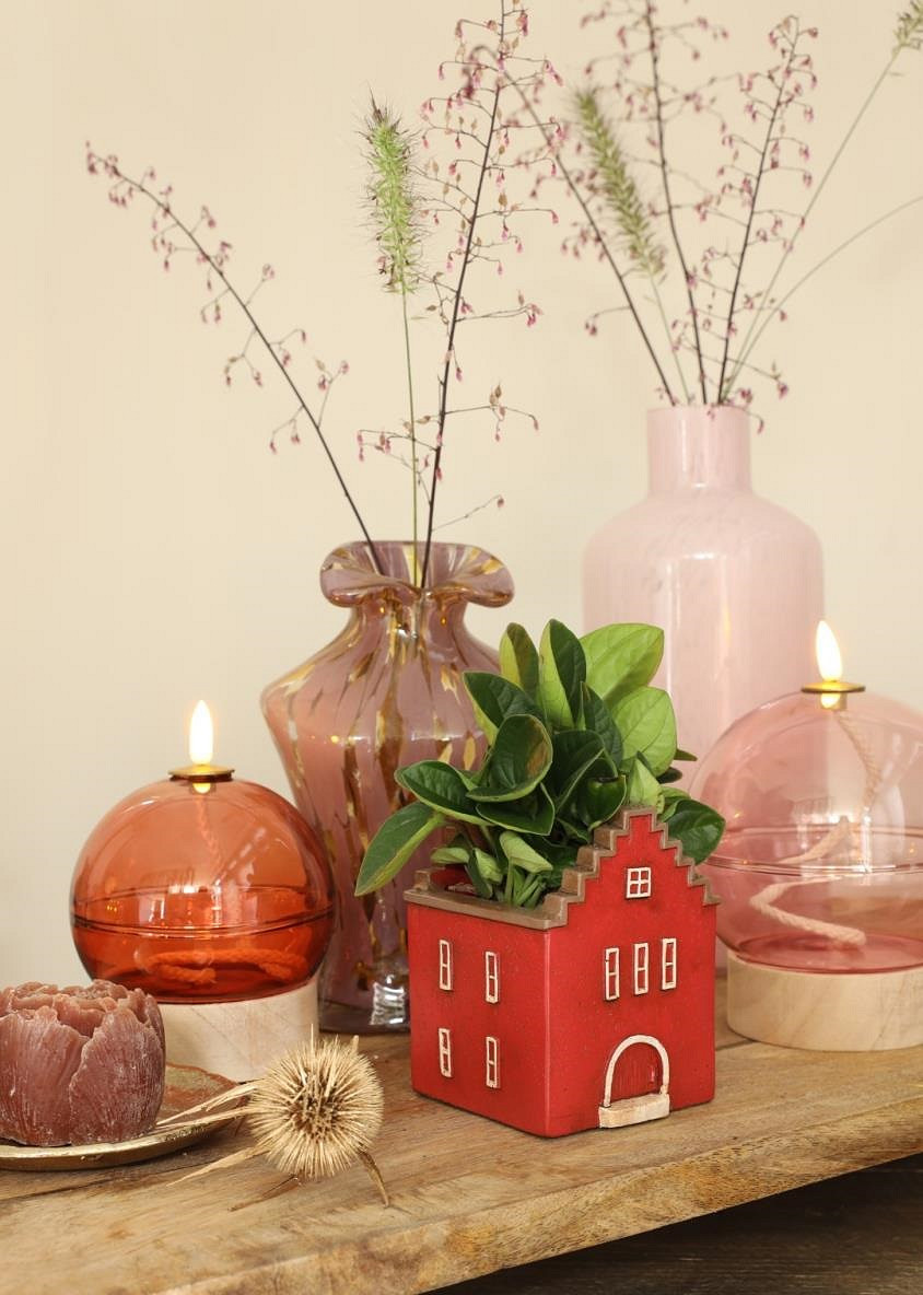 Led oil lamp h13,5 Ø10 cm mahogany w. timer