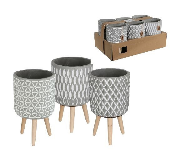 Cement w.pattern w.wooden leg h.21.5 Ø14 cm