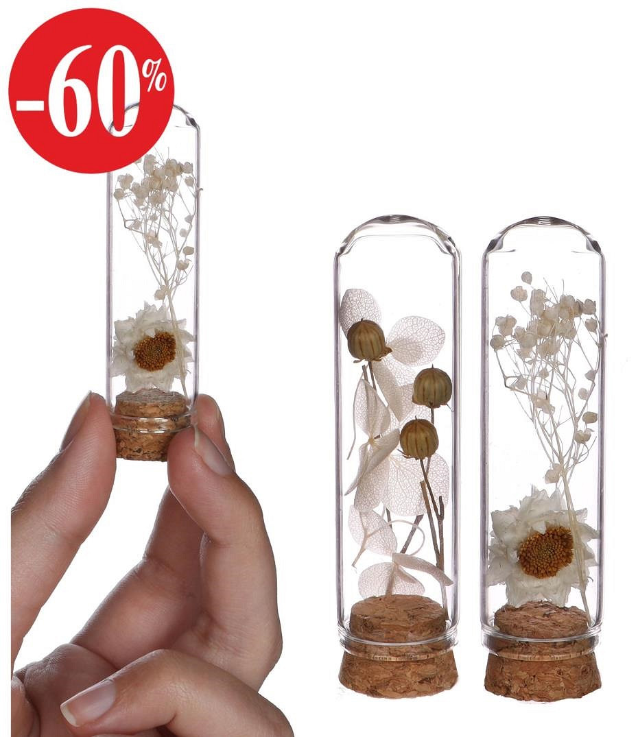 white dome w. dried flowers set 6 Ø2 h.7 cm