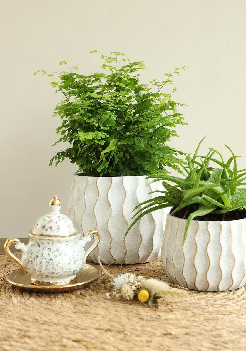 Wave pot cement Ø14,5 h.11 cm creme gold