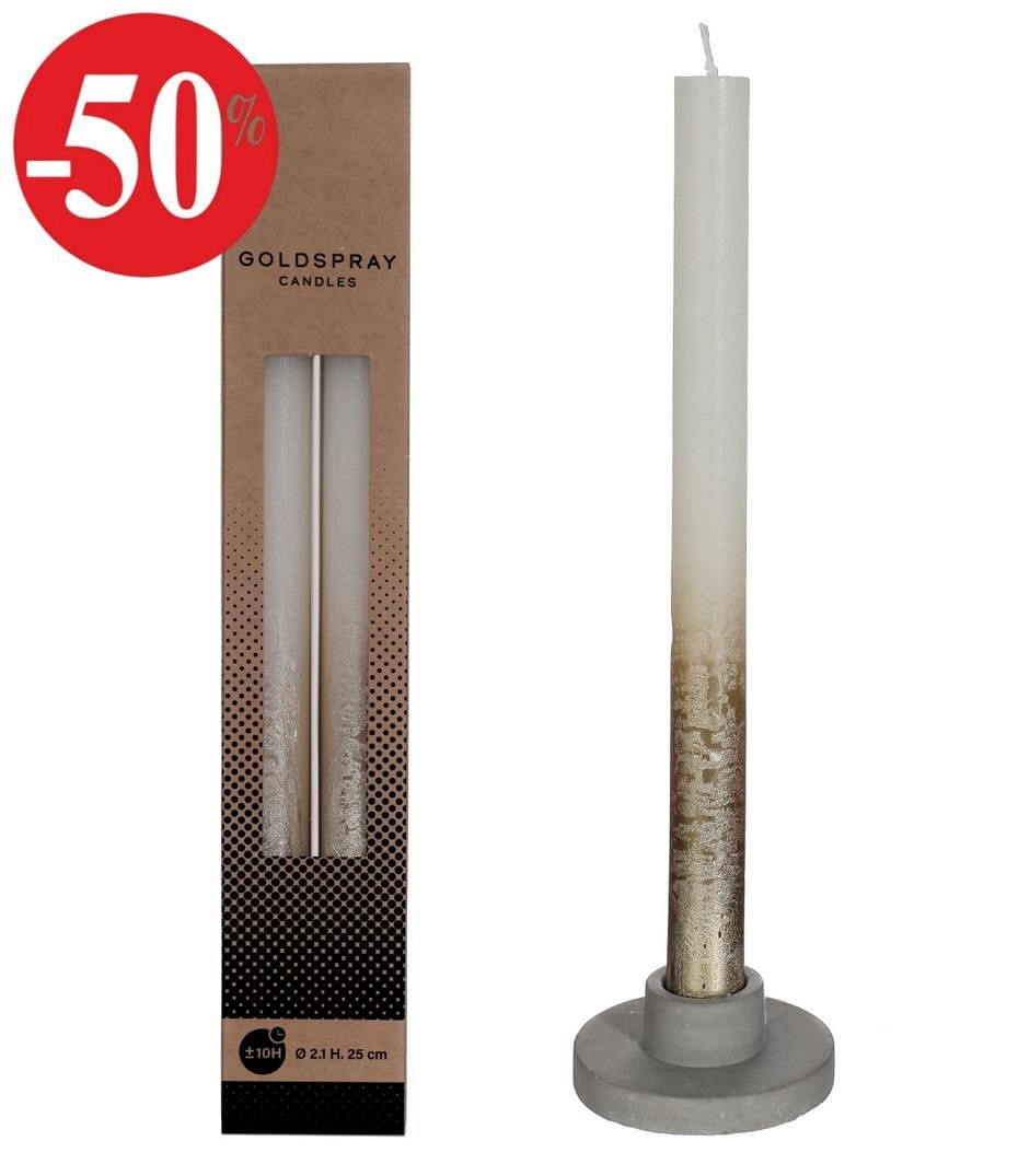 Dinner candle creme w.Gold spray set/2 Ø2.1 h. 25cm
