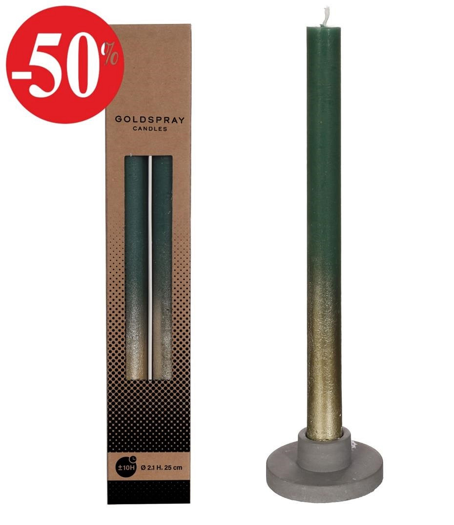 Dinner candle moss green w.Gold spray set/2 Ø2.1 h. 25cm