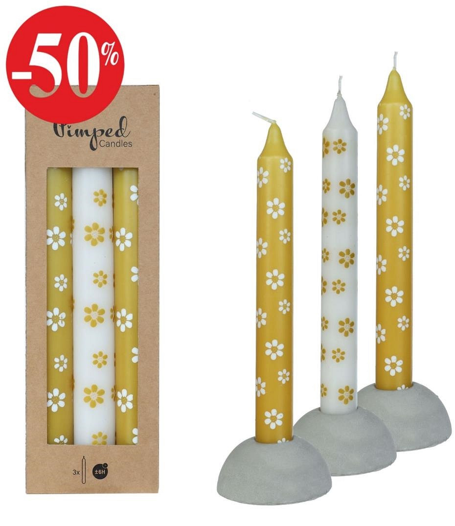Pimped candles flowers Ø2,2 h.20 cm ocre 3 ass.