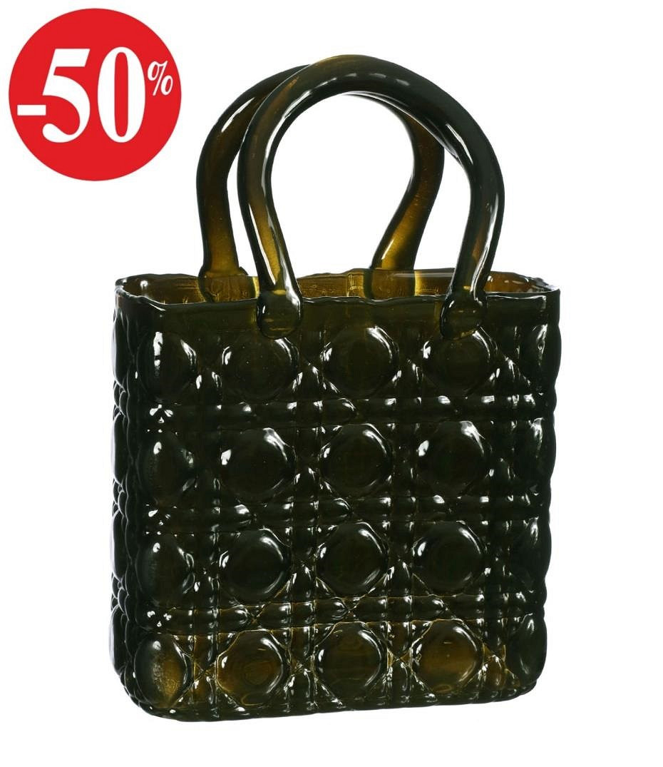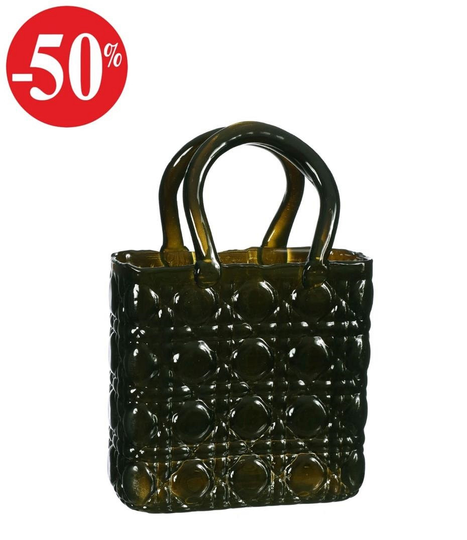 Handbag vase Elysee glass handle L.19 x W.11 x H.28 cm dark green