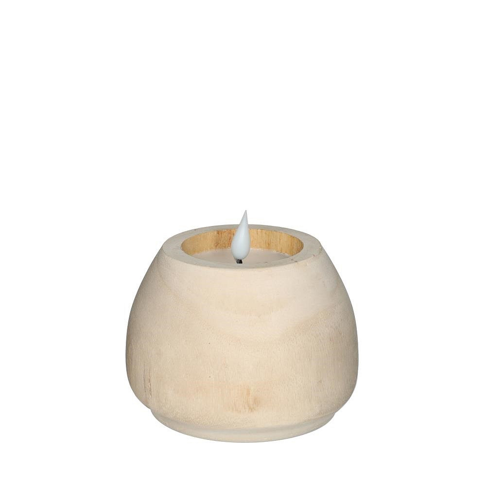 LED wood bowl candle Ø12 h.8,5 cm w.timer