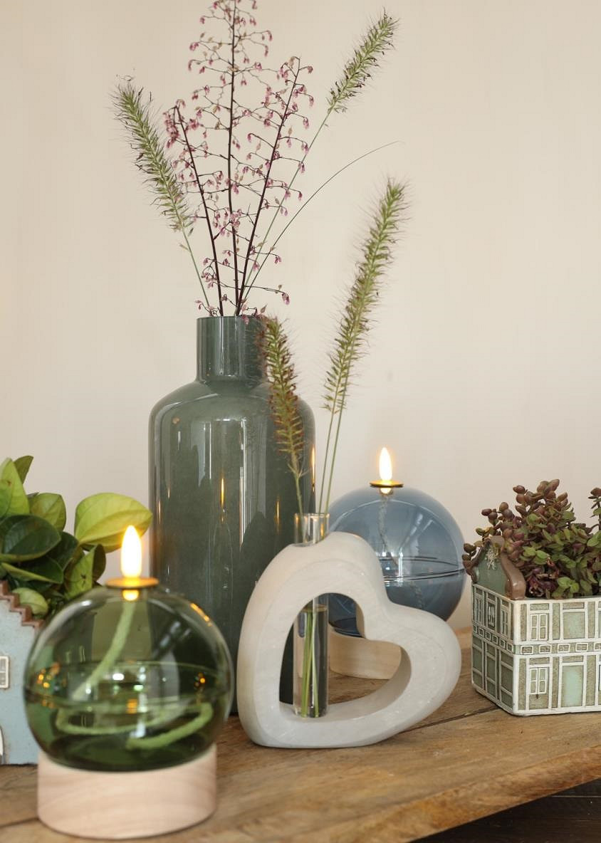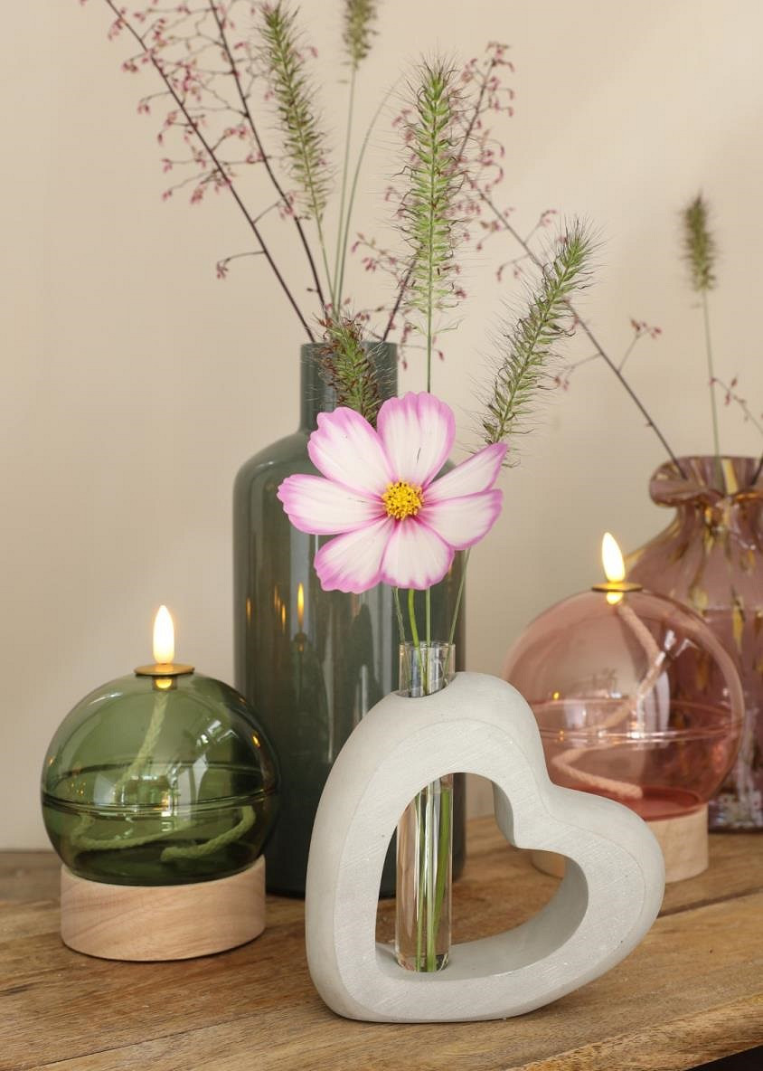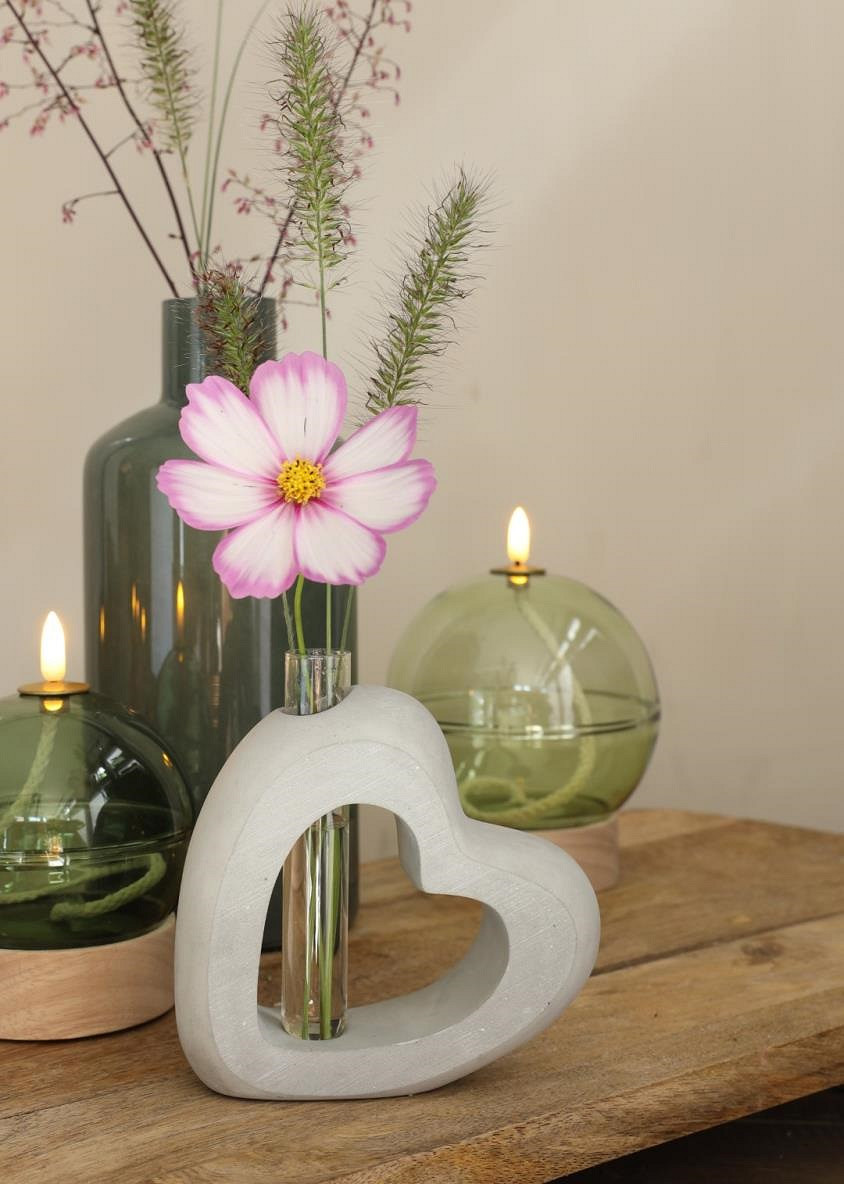 Cement open heart with glass tube L.3,9 x W.13 x H.13,2