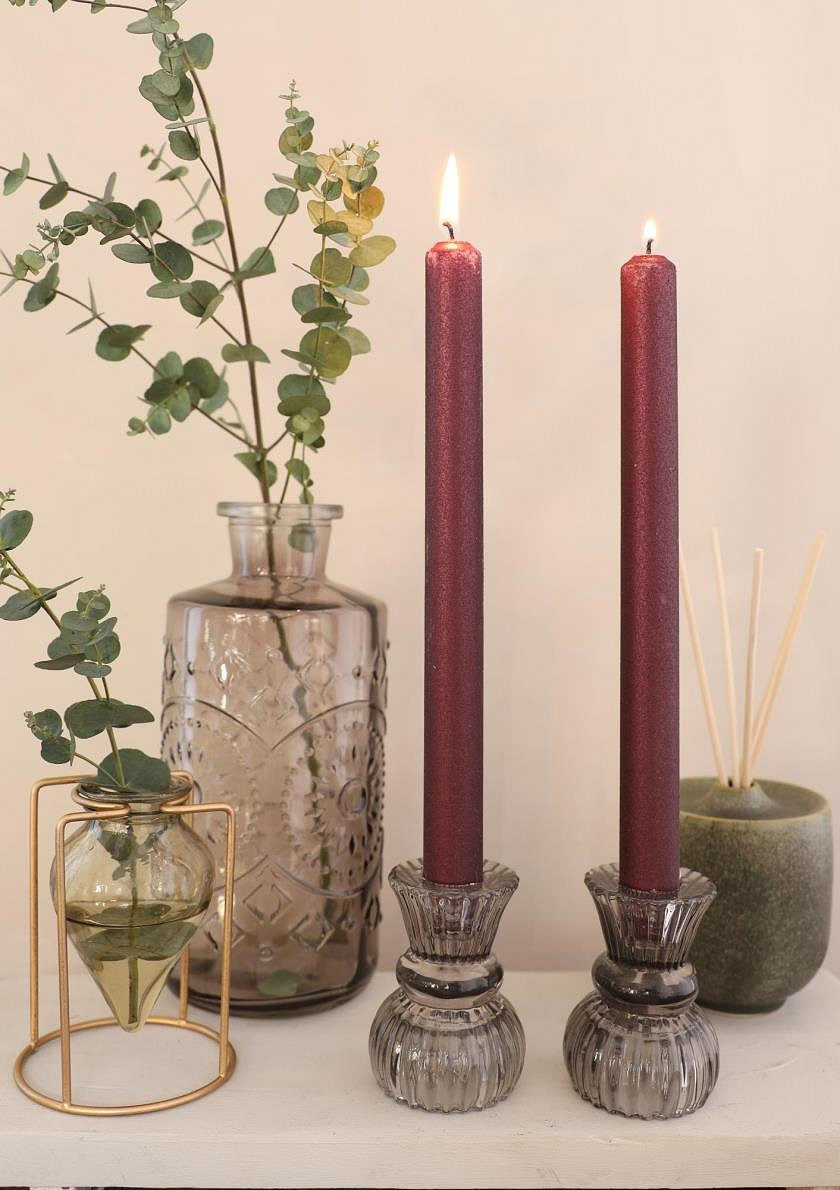Bliss dinner candle Ø2,2 h.25 cm burgundy set 3