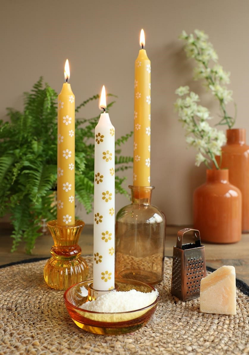 Pimped candles flowers Ø2,2 h.20 cm ocre 3 ass.