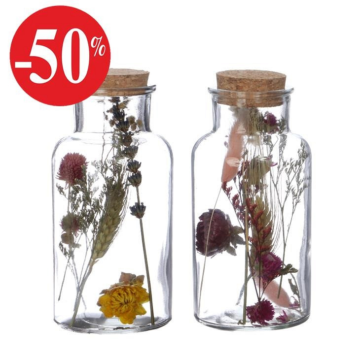 medicine bottle w.dried flowers 2 ass h.16 Ø8 cm